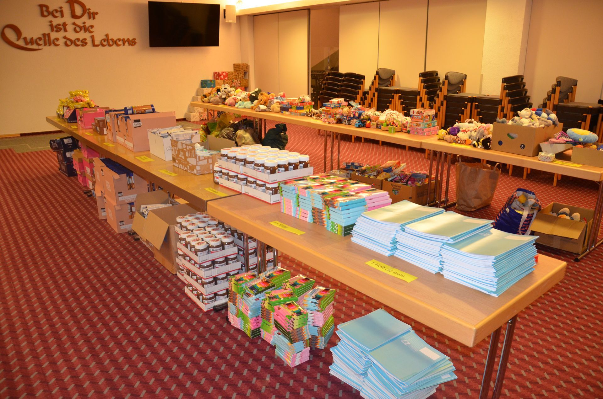 415 Päckchen haben wir selbst gepackt, einige wurden von Einzelpersonen gespendet und 30 Stück packt seit Jahren das AWO Seniorenheim in Dieringhausen für uns. Ganz vielen Dank dafür!