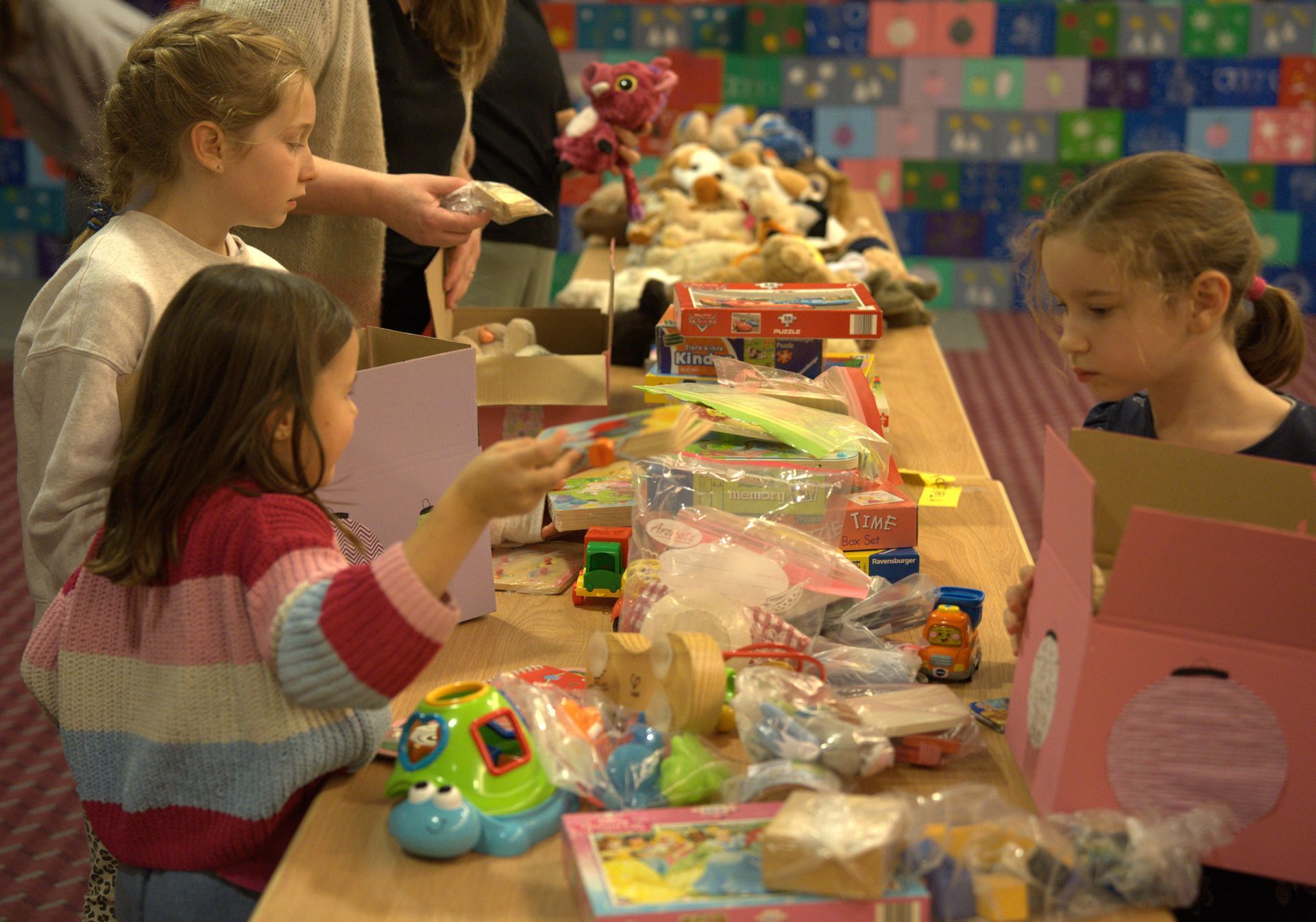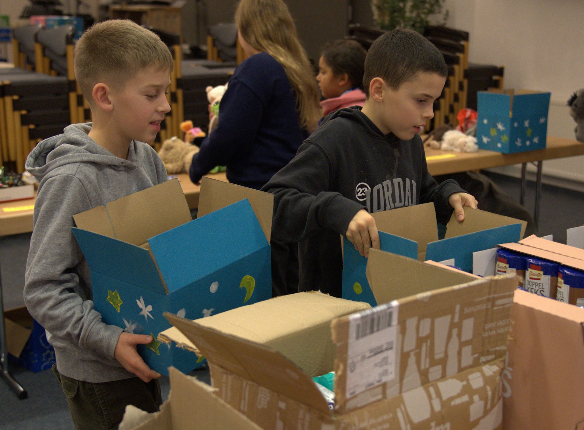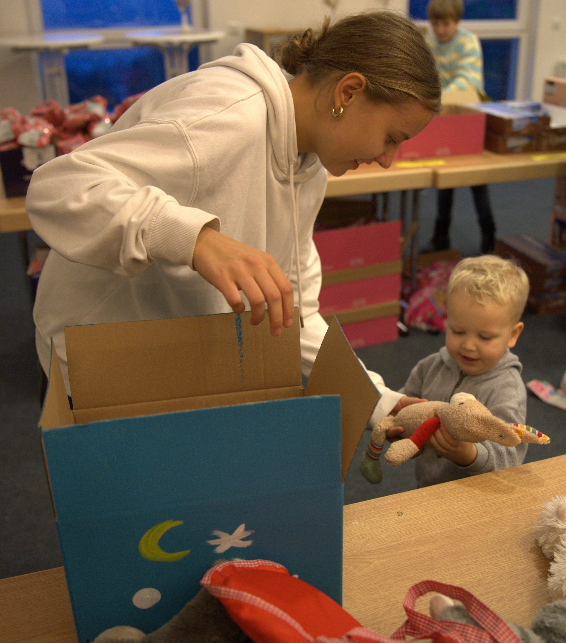 Die Päckchen für dieses Jahr wurden am 20. November in einer fröhlichen Aktion von 30 LöhKids mit der tatkräftigen Unterstützung von 20 Erwachsenen gepackt und aufgestapelt.
